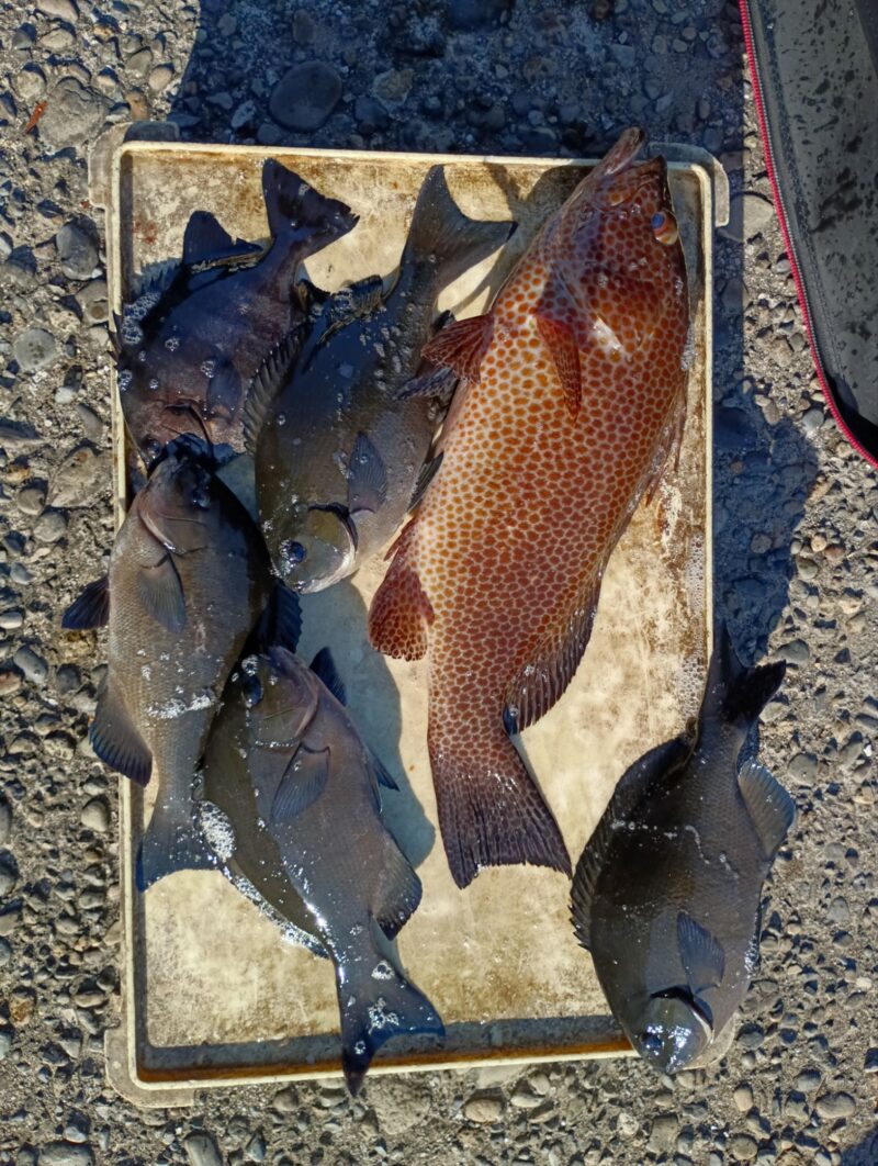 今日も海上凪でした。石鯛、石垣、アカハタ 好調に釣られていました。フカセ釣りのお客さん2名と少なく釣果は少ないです。