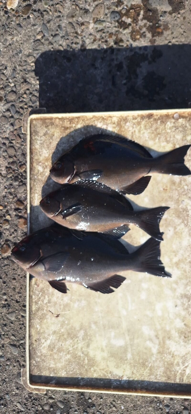 若潮 満潮04:10 /13:41 干潮08:26 /21:27 志賀氏 グレ 40cm 1匹 尾長 30cm前後 2匹 金田氏 チヌ 48cm 1匹 尾長 34~30cm 4匹 -