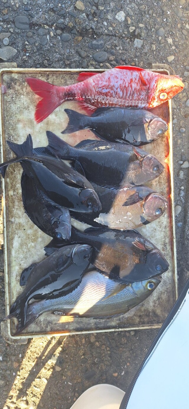 小潮 満潮 00:21 / 12:21 干潮 06:54 / 18:19 古林氏 尾長 45~33cm 6匹 新田氏 真鯛 63~55cm 3匹 イサキ 39cm 1匹 金田氏 尾長 38~34cm 2匹 中原氏 尾長 30cm前後 4匹イガミ 45cm 1匹サンジ 1匹 -