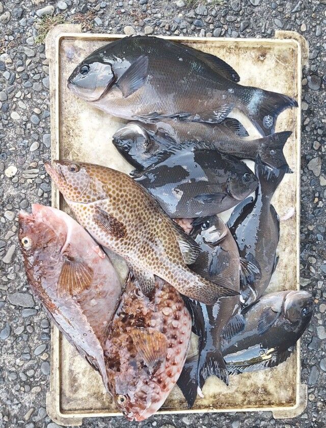 若潮 満潮01:49 /15:08 干潮08:44 /20:27 川端氏 グレ 40㎝ 1匹 尾長 30㎝前後 2匹 イサキ 40㎝ 1匹 太田氏 尾長 39㎝ 1匹 イサキ 40~37㎝ 3匹 イガミ 44㎝ 1匹 アカハタ 1匹 浅治氏 尾長 43~40㎝ 2匹 田阪氏 石垣 42㎝ ... -