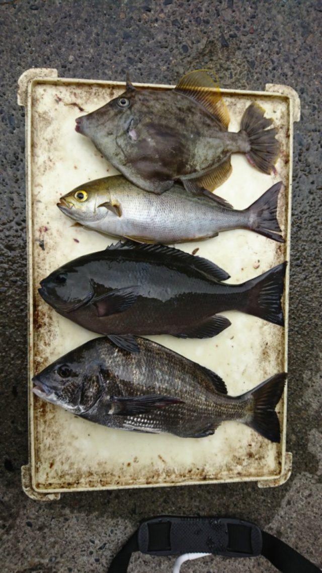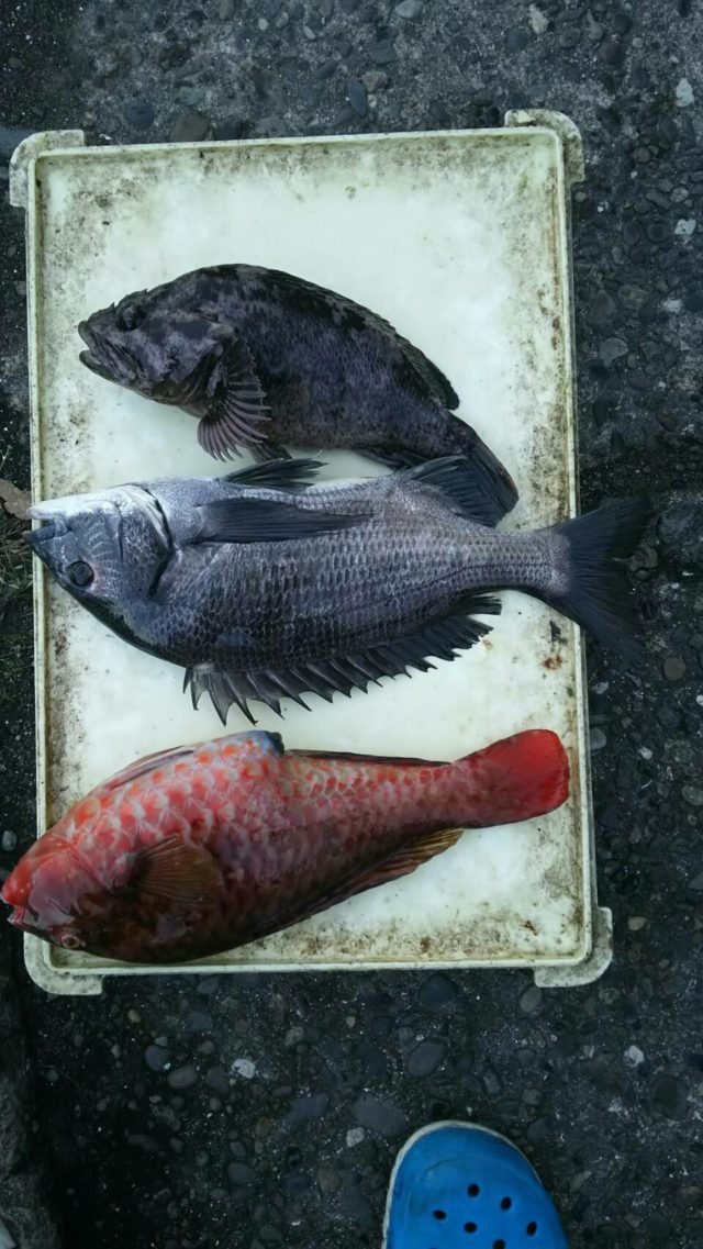 風が強く 苦戦!!明日に期待です🎵 豊明市の斉藤 洋介氏 チヌ 44㎝ 1匹 イガミ 1匹 ソイ 1匹 京都市の薮内 英史氏 メイチ 35前後 2匹 アカハタ2匹 -