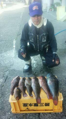 大阪市の小川氏 石垣鯛 30~48㎝ 4匹 カワハギ 4匹 大阪市の益枝 俊夫氏 グレ 30~38㎝ 6匹 アズキマス 1匹 大紀町の大西 直人氏 イガミ 35~50㎝ 12匹 名古屋市の永縄 将宏氏 石垣鯛 30㎝前後 3匹 カワハギ 8匹 -