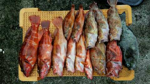 名古屋市の錦 政彦氏 グレ 33㎝ 1匹 アカハタ 8匹 ガシ 5匹 浜松市の谷本 真氏 アカハタ 1匹 イサギ 1匹 -