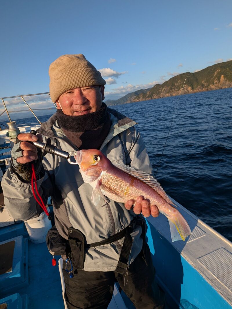 水深100m以上から釣り上げるオオアジは迫力あり、又、たいへん美味です。皆さんも一度、体験してみませんか!最高記録は、54cm、1キロの大アジを釣り上げました。