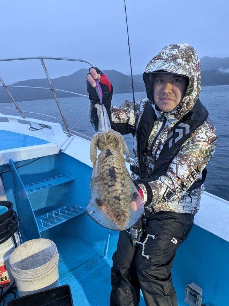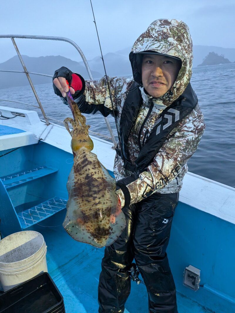 アオリイカ持ち帰り3杯小さいサイズ2杯リリース比較対象に大きさ違いますね〜